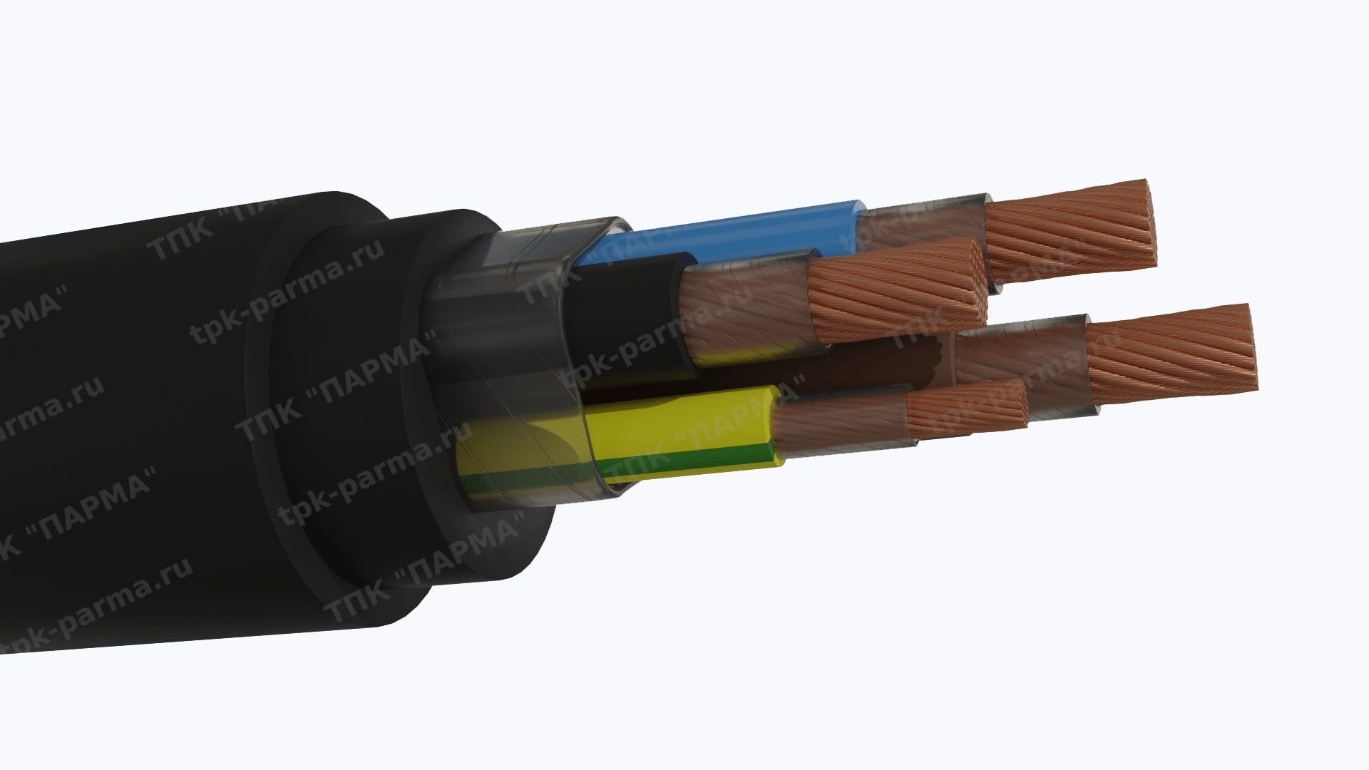1. Пять токопроводящих многопроволочных медных жил с площадью номинального поперечного сечения 35 мм2, соответствующих 5 классу по ГОСТ 22483-2012.
