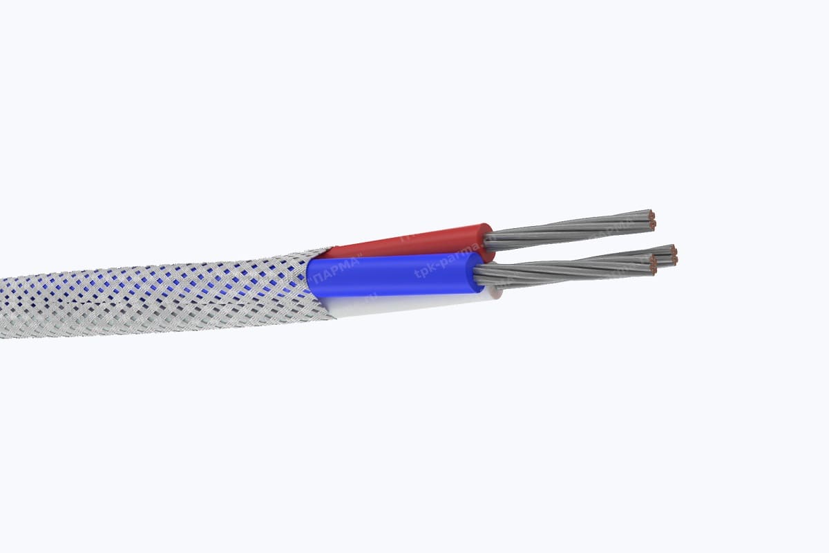 1. Две многопроволочные медные лужёные токопроводящие жилы с площадью номинального поперечного сечения 2,5 мм2, соответствующие 3 классу по ГОСТ 22483-2012.